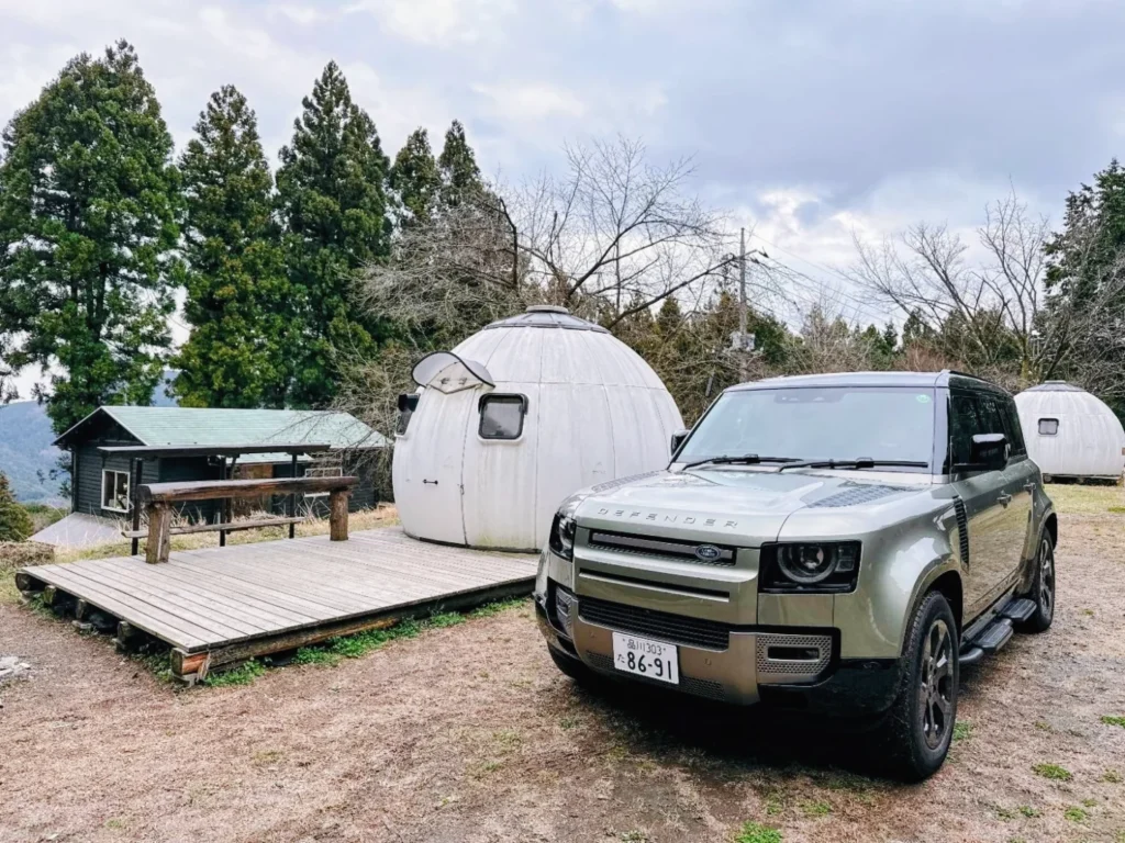 DEFENDERの存在感がアウトドアの景色とマッチして、